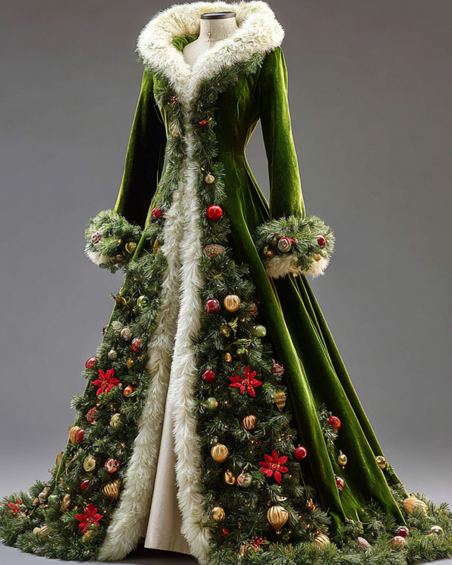 Women's elegant and comfortable Christmas-themed 3D embroidered fur collar warm coat 9362