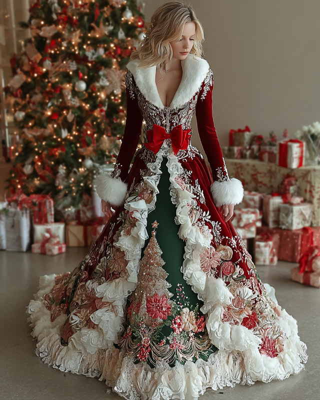 Women's Autumn/Winter Elegant Christmas-Themed Embroidered Art Comfortable Warm Thick Dress 2281
