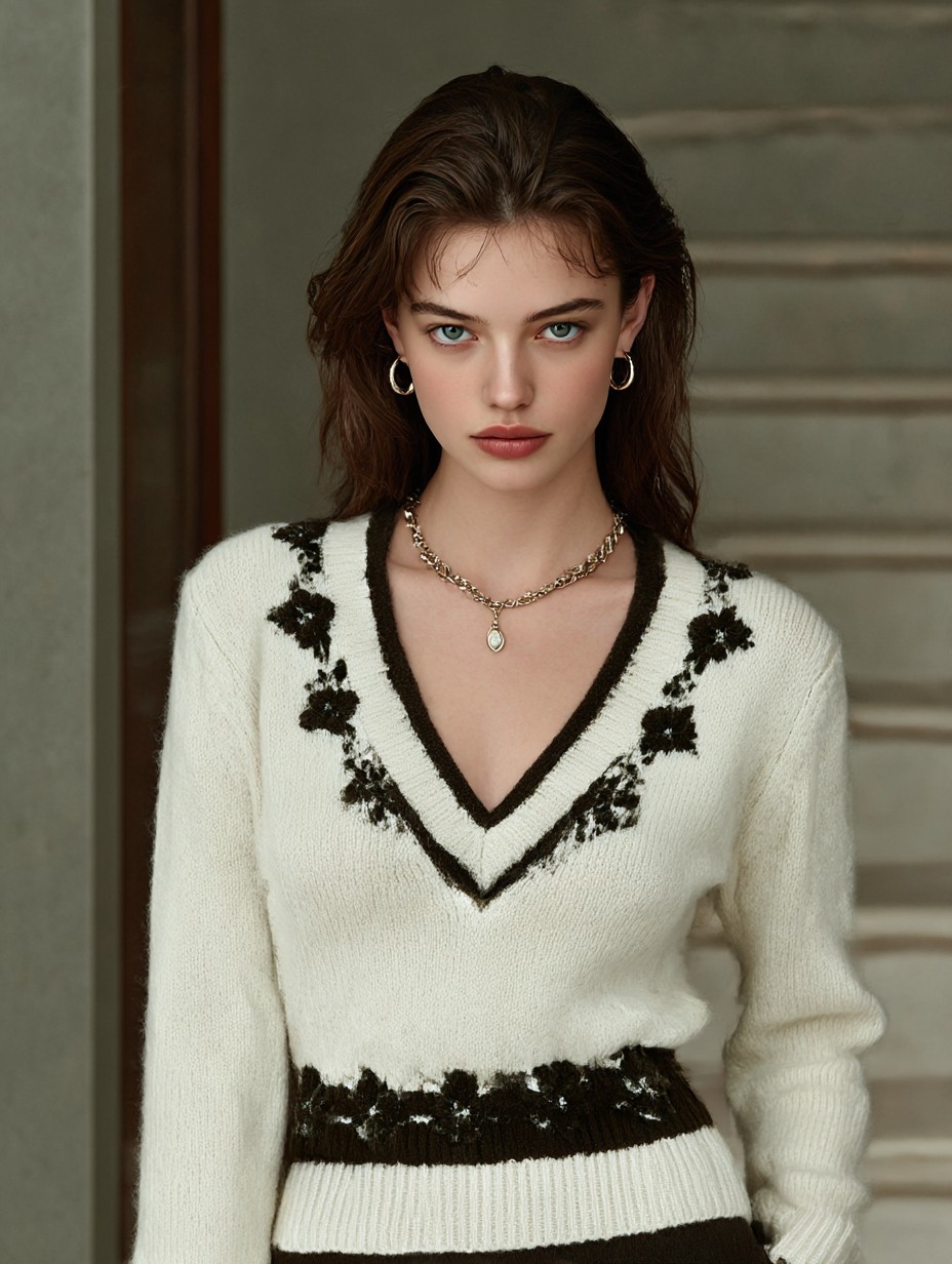 Women's elegance v-neck embroidered long-sleeved sweater