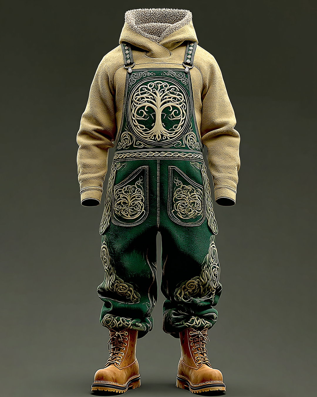 Men's Autumn And Winter Contrast Color Viking Tree of Life Overalls 9814
