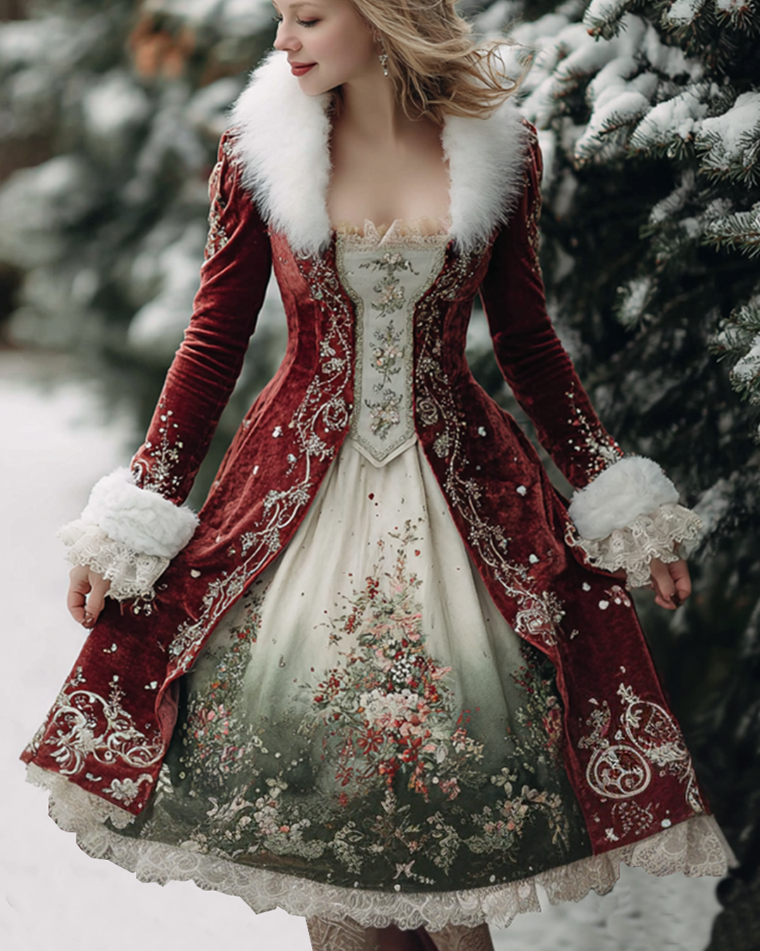 Women's Autumn/Winter Christmas-Themed Embroidered Original Irregular Design Dress 3400