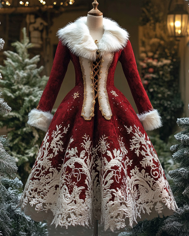 Women's Christmas-themed Embroidered Original Design Irregular Midi Dress 6553