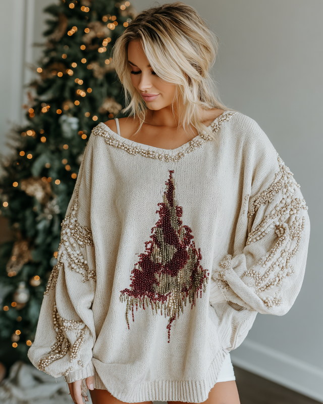 WOMEN'S CHRISTMAS THEMED ELEGANT EMBROIDERED WARM SWEATSHIRT 9478