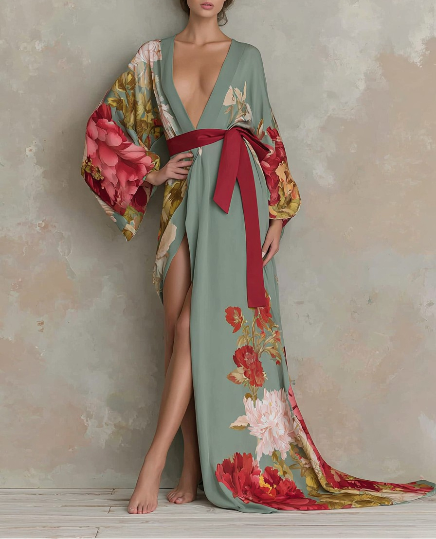 Women's Elegant Vintage Printed Robe