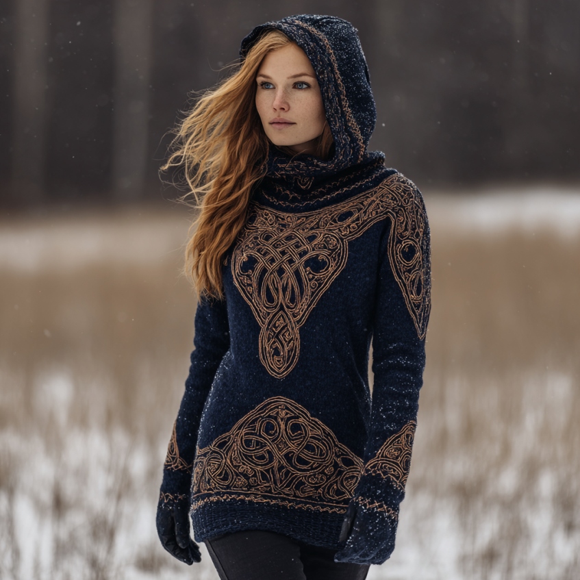 Women's Viking Celtic Knot Art Knit Warm Hooded Sweater