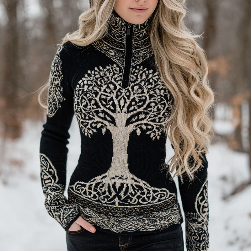 Women's Vintage Viking Style Tree Of Life Celtic Art Knitted Sweater
