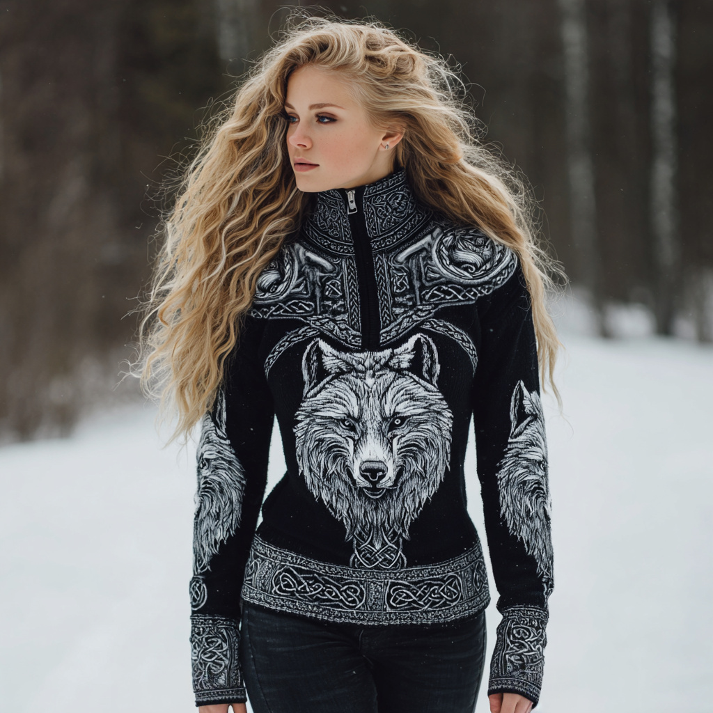 Women's Vintage Viking Wolf Style Celtic Art Knitted Sweater